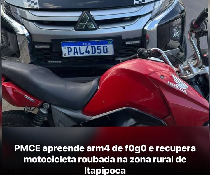 PMCE apreende arm4 de f0g0 e recupera motocicleta roubada na zona rural de Itapipoca A Polícia Militar do Ceará (PMCE) apreendeu uma arm4 de f0g0 e recuperou...