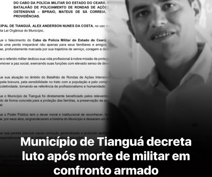 Município de Tianguá decreta luto após m*rte de militar em confronto armado A Prefeitura de #tianguá decretou luto oficial por três dias no município...