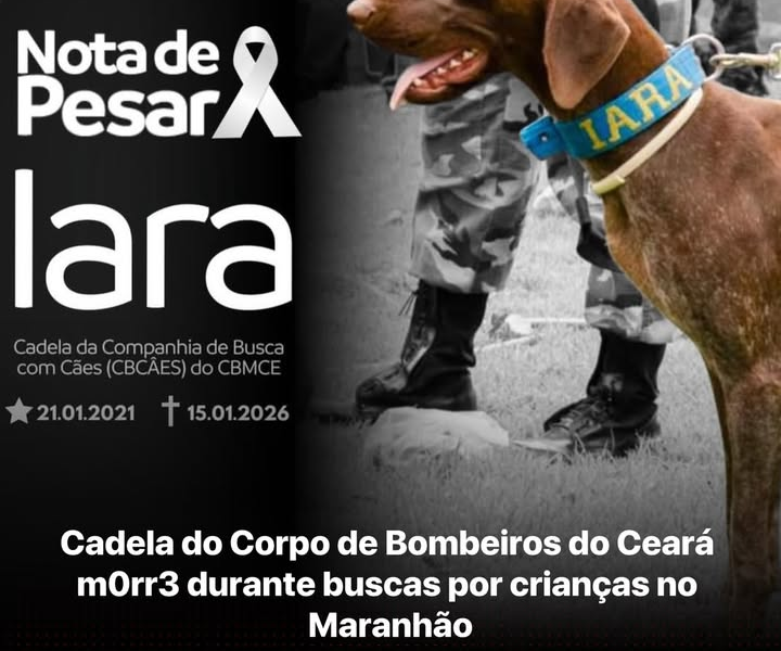 Cadela do Corpo de Bombeiros do Ceará m0rr3 durante buscas por crianças no Maranhão A cadela Iara, de 5 anos, que integrava o Corpo de Bombeiros do Ceará,...