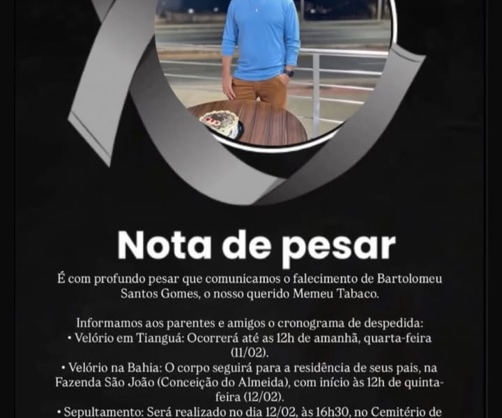 O Portal Imperador Notícias manifesta profundo pesar pelo falecimento de Bartolomeu Santos Gomes, carinhosamente conhecido como Memeu Tabaco. Neste momento de...